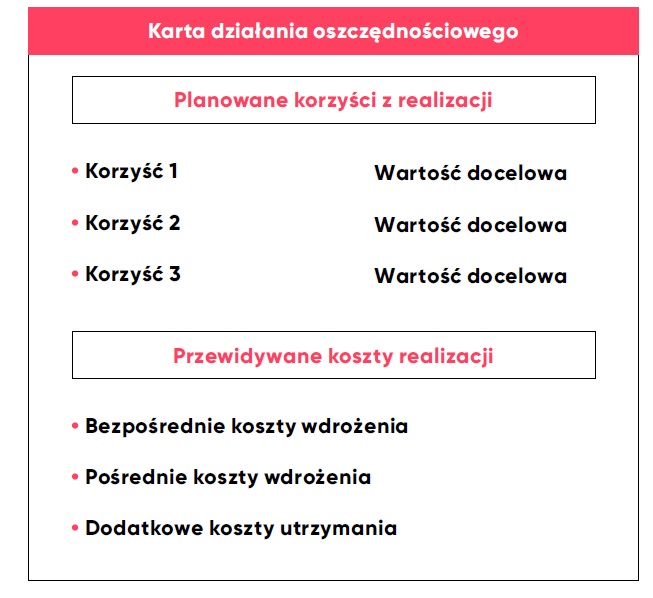 W efekcie każdy z analizowanych projektów oszczędnościowych należy opisać w postaci prostej matrycy/karty działania: