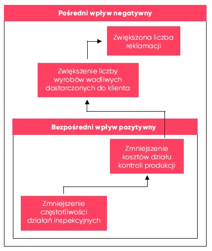 - Działając lokalnie i myśląc tylko w obszarze własnego działu, możemy osiągnąć poprawę w sposobie funkcjonowania funkcji, pogarszając parametry innych działów. Niewłaściwie obniżając wartość magazynu, możemy przyczynić się do wydłużenia terminów dostaw oraz zmniejszyć współczynnik kompletności zamówień; zmniejszając koszt kontroli wyrobu gotowego możemy radykalnie zwiększyć pracochłonność działań serwisowych itd.